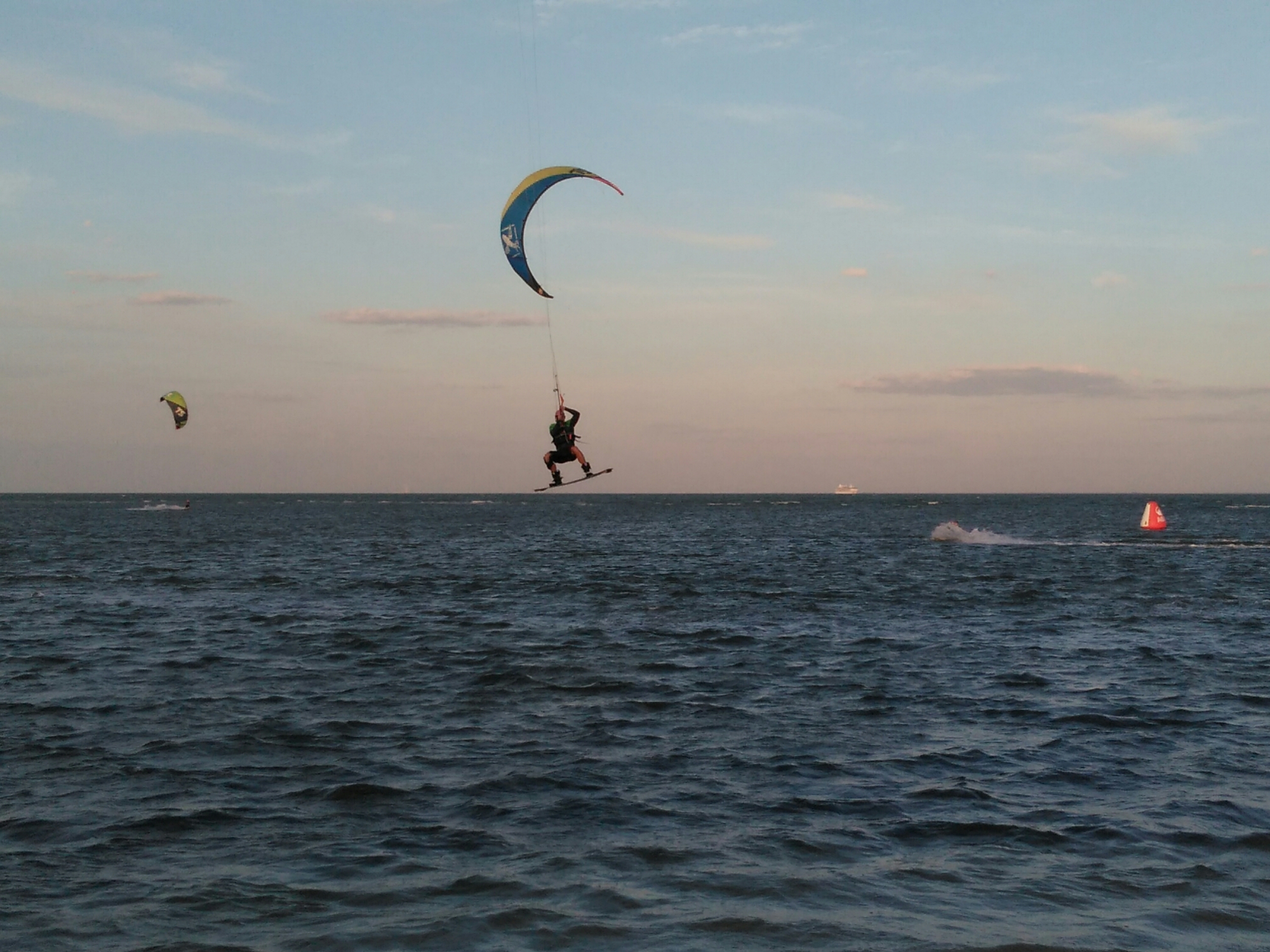 So, instead of racing, Jim and Paul will go kiteboarding nearby tomorrow!! This afternoon after we packed up the boat, we went to the nearby bridge beach where the Tampa Big Air kiteboarding competition was being held. Wow!  Paul brought a couple of kites and his board so that’s our plan for tomorrow.