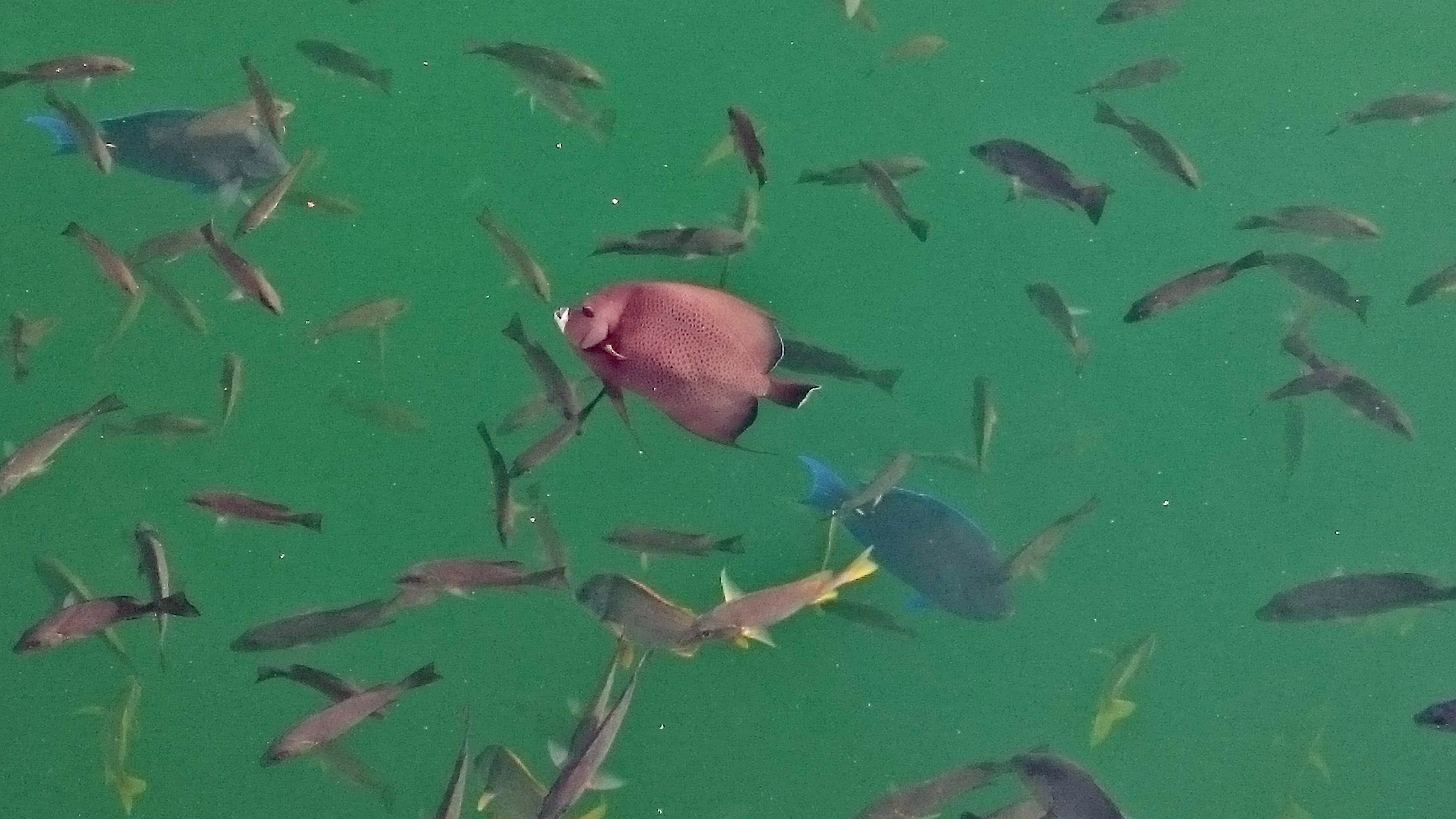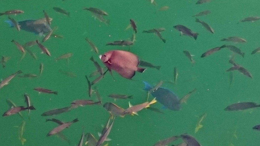 French Angelfish, Blue Tangs and other fish at Ocean Hole