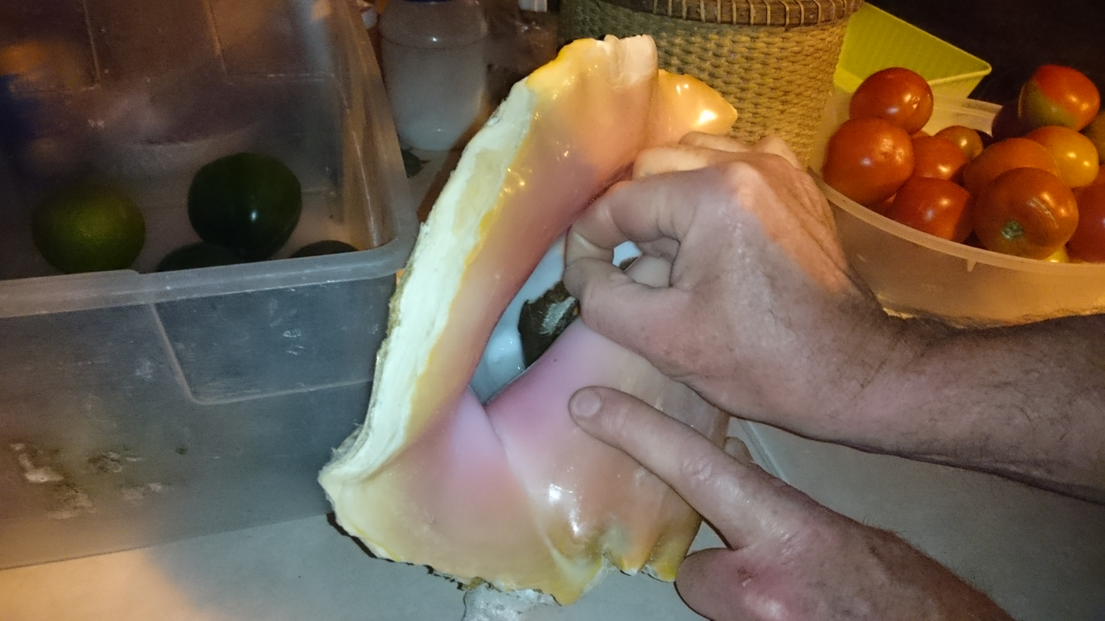 Jim trying to shake hands with a conch