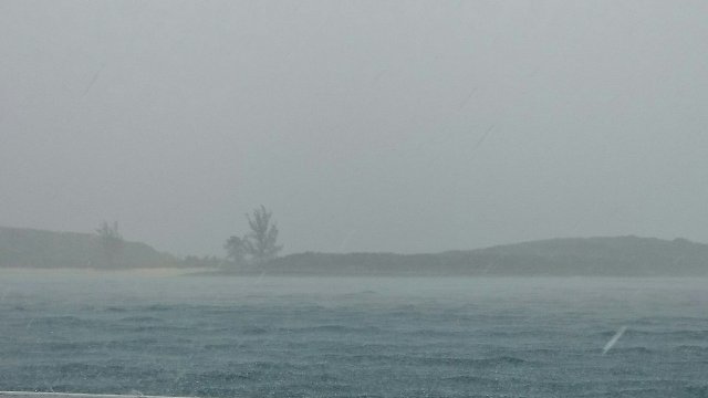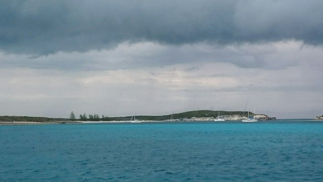 High winds had us looking for good holding at Hoffman Cay… In vain four times we anchored with no set. Hard scoured rock under a thin layer of sand or clay. I dove on the anchor and only the tip was in a bit of sand. Made friends with a big barracuda patrolling the nearby rocky shore.We moved from spot to spot in between the south end of Hoffman. On the fourth try, Jim dove on the anchor and came face to face with a black tip reef Shark. He wasn’t happy.But the fifth time was the charm as the Rocna 15 Kg dug into clear sand. Last night five boats bobbed and tossed at anchor in 25 knots of wind. Only rough for one night as the winds clocked around (they always go clockwise) from howling west to howling north east. We had an anchor watch running on three different devices and one of us up at all times.Moved around the corner this morning to our own little beach sheltered from strong north and later east winds. This beach has a path to a famous blue hole inland on the Cay. More about that in the next post.